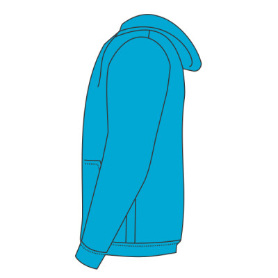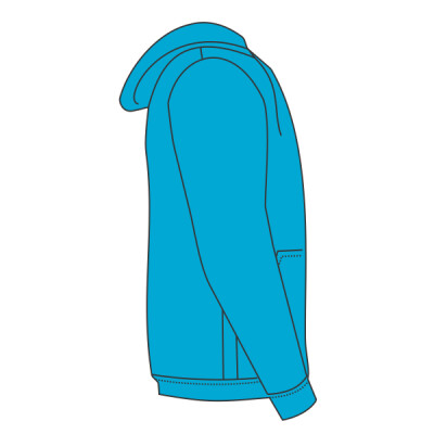 80% cotton/20% polyester. Drop shoulder style. Double fabric hood. Taped neck. Narrow full length covered zip. Front pouch pockets. Cotton/Lycra® ribbed cuffs and hem. Twin needle stitching. Cut out label.
